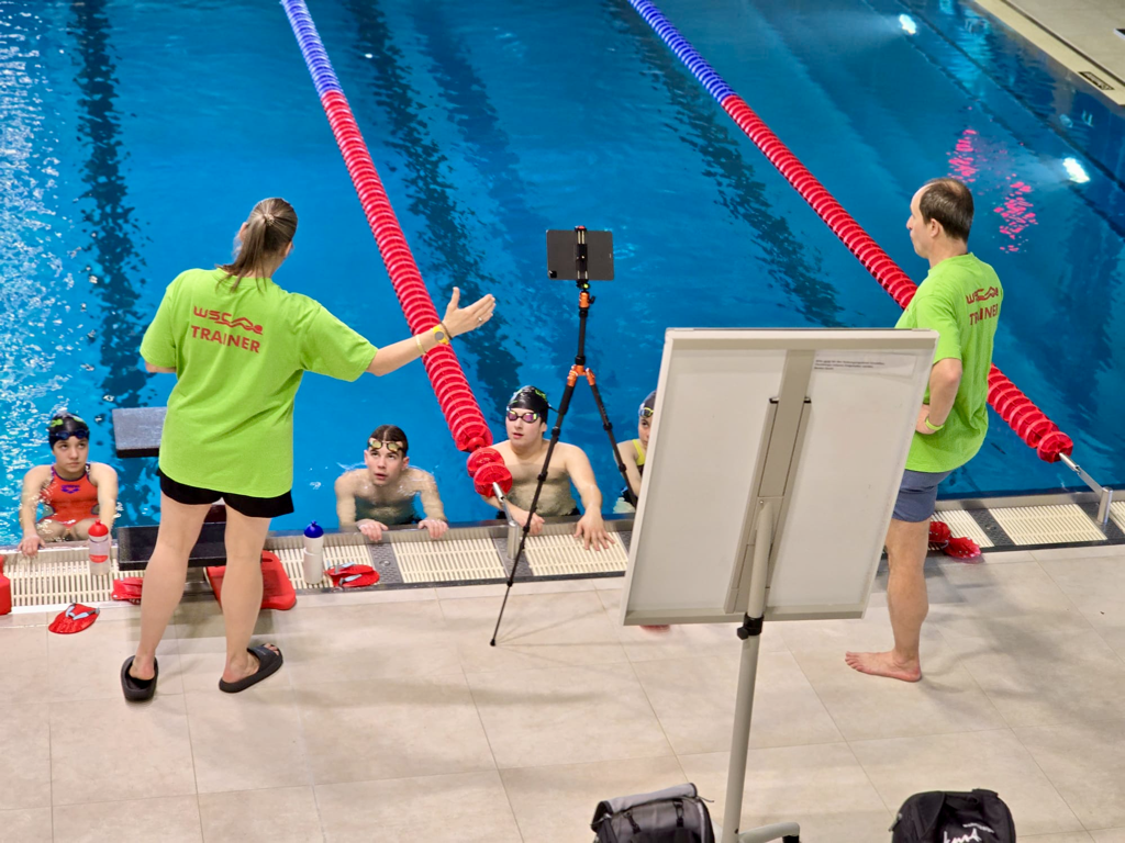 Am Nachmittag waren wir im 25m Becken und hatten sogar 4 Bahnen. Wir fokussierten uns heute Nachmittag auf die Rü Technik und zwei Trainer, Urs und Dawn, leiteten uns heute Nachmittag. Auch jetzt standen Sprints vor uns, zum Glück aber nur kurze.